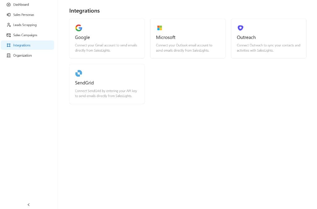 - Gmail and Outlook integration for sending from the rep’s connected mailbox